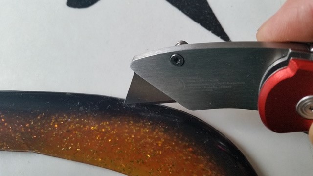 6. Aussparung in der Grösse des Magneten mit dem Cutter Messer aus dem Gummifisch herausarbeiten.