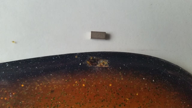 8. Magnet einsetzen und mit einem nichtmagnetischen Gegenstand (Zahnstocher) andrücken. Ausreichend aushärten lassen, ca. 30 Minuten.
