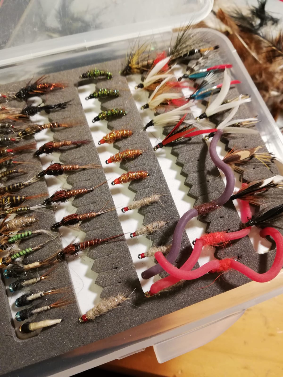 FOTO: verschiedene Nassfliegen mit Flügeln (oben rechts)